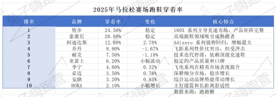 2. 本土品牌多维发力,特色策略打造差异化:本土品牌在多品类呈现亮眼表现,运动装备领域,特步全年赞助69场A级赛事,连续16年冠名厦门马拉松,2024年国内8场马拉松破三选手中,其跑鞋穿着率达50.64%,跑鞋业务贡献鞋履营收的57%,实现专业口碑与业绩转化的双赢;鸿星尔克以济南马拉松官方荣耀赞助商身份,与快消品牌构建场景化补给矩阵;多威深耕东营马拉松,以高性价比产品夯实亲民定位。