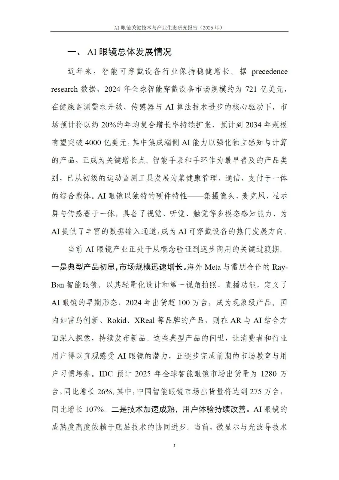 ❏报告名称:AI眼镜关键技术与产业生态研究报告(2025年)