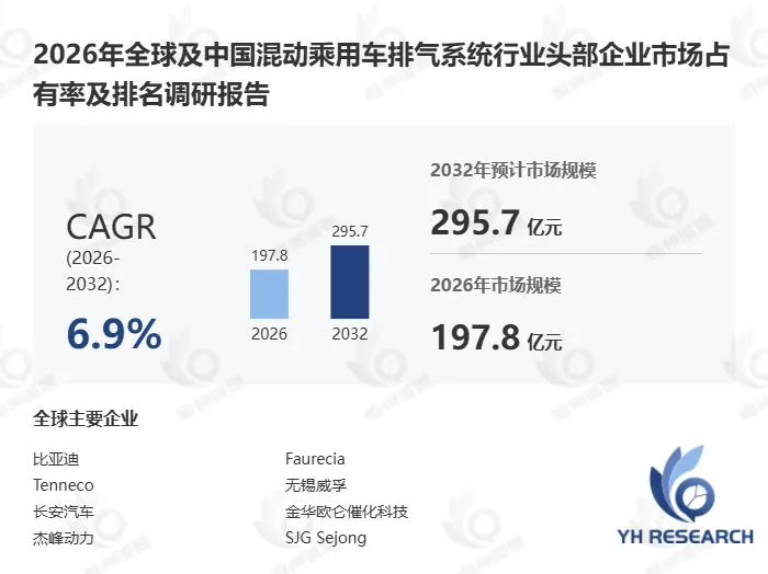 据恒州诚思调研统计,2025年全球混动乘用车排气系统市场规模约174.1亿元,预计未来将持续保持平稳增长的态势,到2032年市场规模将接近295.7亿元,未来六年CAGR为6.9%。
