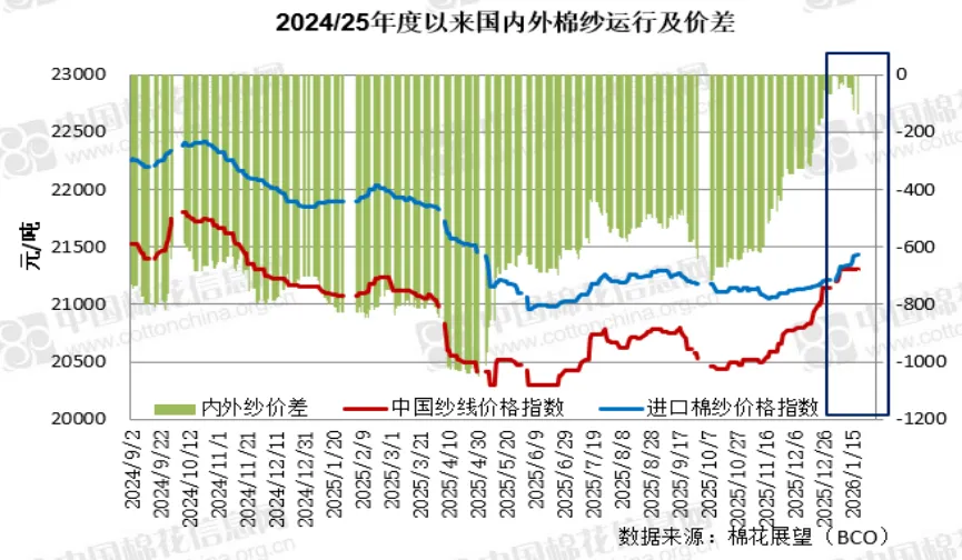 1月份国内棉价触顶回落,外棉震荡运行,内外棉价差先扩大后收窄,在3000元/吨附近偏高位运行。月初小长假结束,郑棉主力延续涨势,连涨三日并触及逾一年半高点15095元/吨。此阶段市场继续发酵相关政策助推新疆棉花种植面积调减预期,同时……
