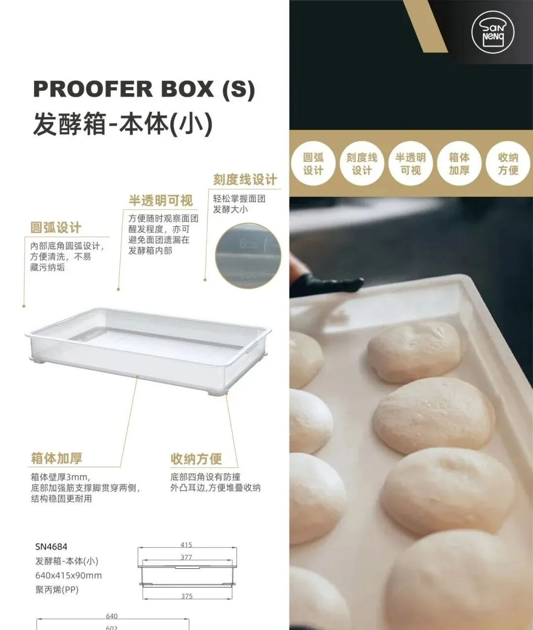 圆弧设计、半透明可视、内有刻度线,箱体加厚,收纳方便。