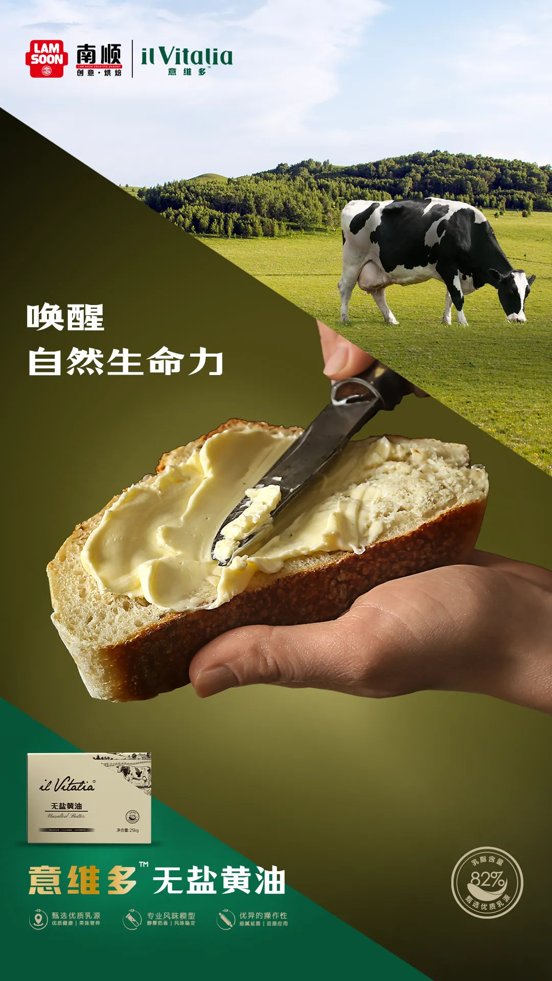 唤醒自然生命力!凭借风味纯净、接受度高等优势,意维多无盐黄油打造“更纯净、不油腻、回味清爽”产品,满足大众消费者偏爱,助力品牌快速抢占烘焙主流市场。