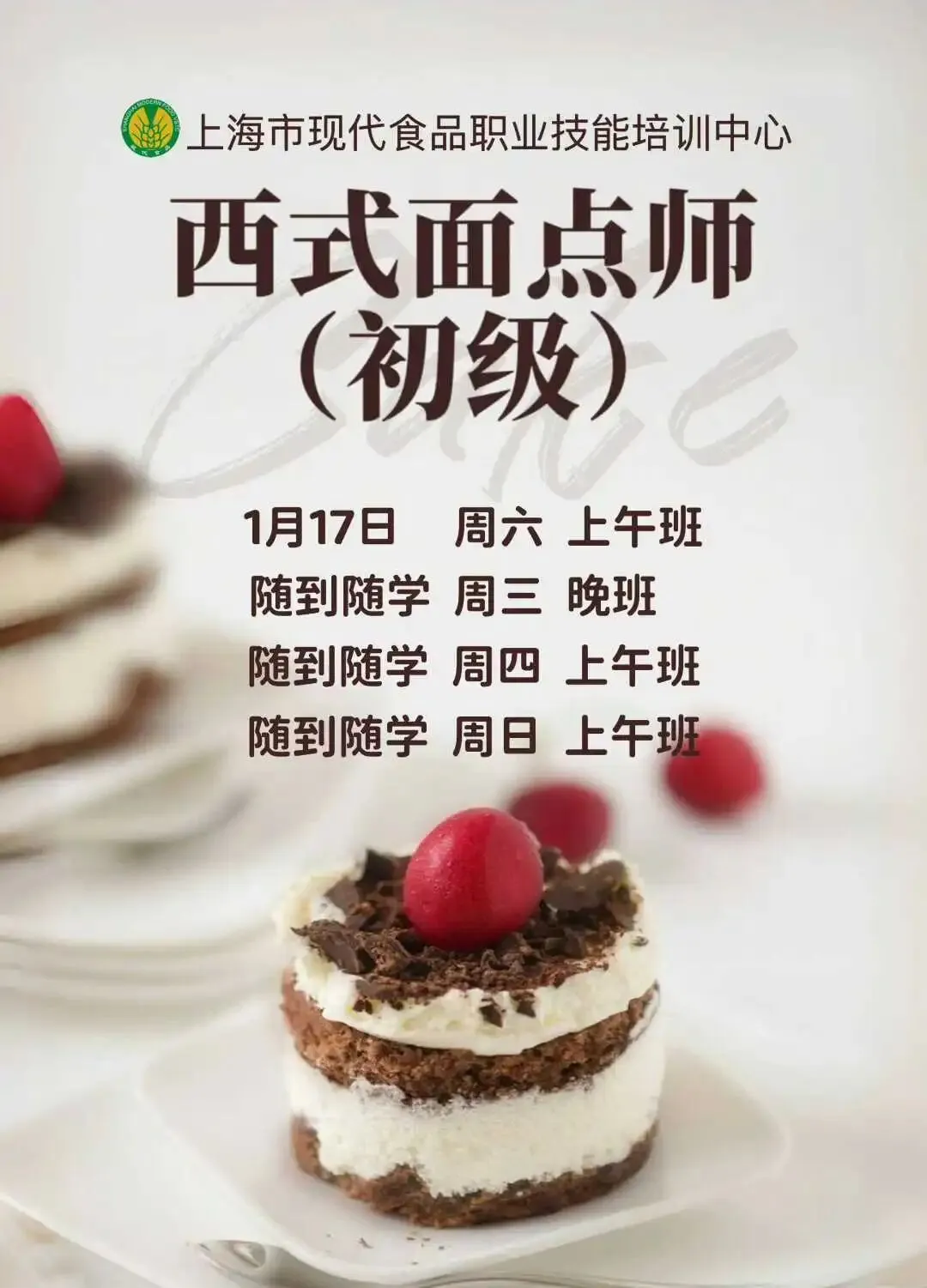 4、上海现代食品职业技能培训中心西式面点师初级班即将开课
