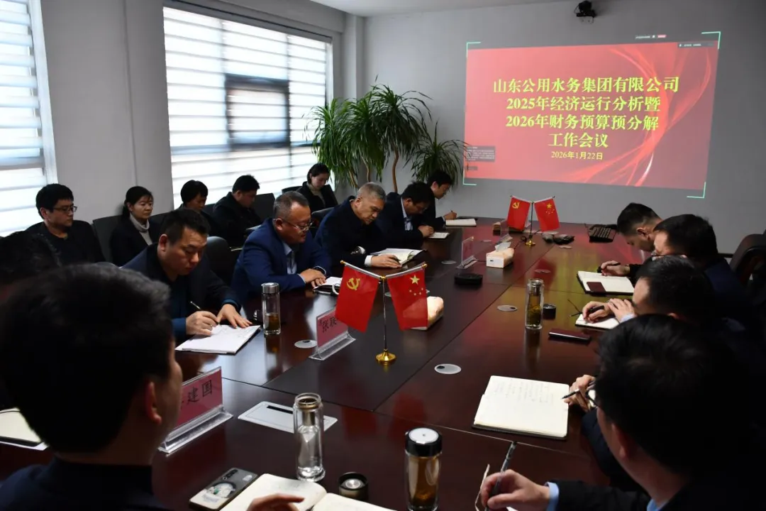 1月22日,山东公用水务集团召开2025年度经济运行分析暨2026年财务预算预分解工作会议,贯彻落实山东公用2025年度经济运行分析及2026年度财务预算预分解工作会议精神。全面总结2025年经济运行情况,分析当前面临的形势与挑战,安排部署下一阶段重点工作,动员和引领全体干部职工紧扣目标,把握关键,加压奋进, 共同推动公司高质量发展迈上新台阶。水务集团领导班子成员,各权属公司、职能部门主要负责人在主会场参加会议,各权属公司设分会场。