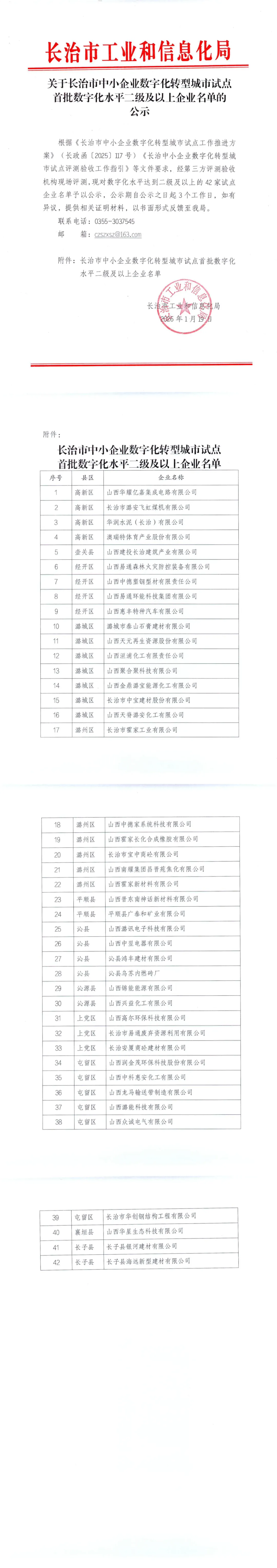 长治市|关于长治市中小企业数字化转型城市试点首批数字化水平二级以上企业名单的公示