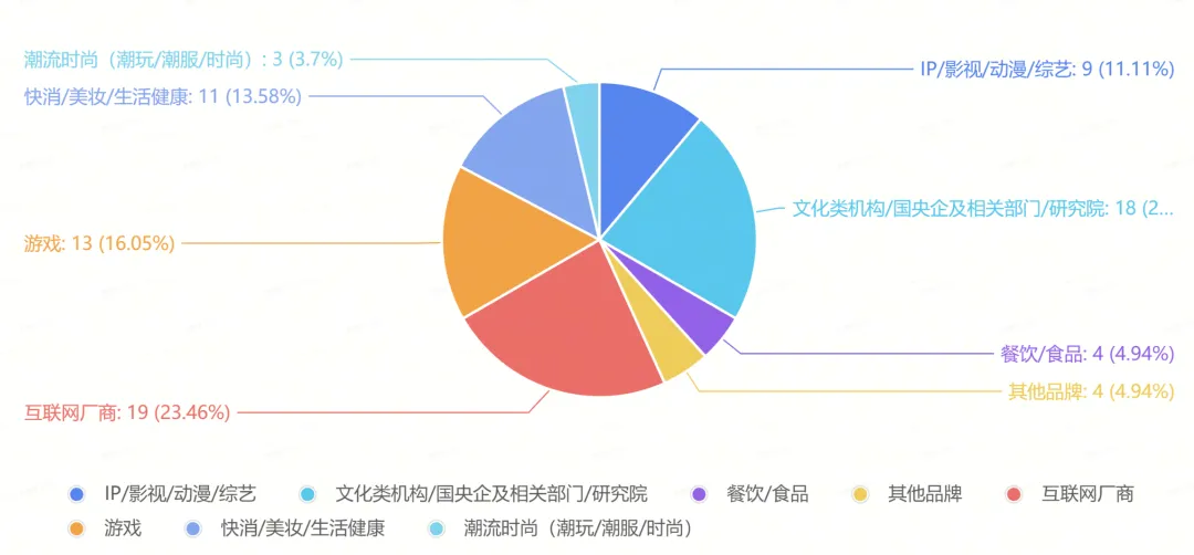 整体来看,本月品牌联动呈现出清晰的覆盖层面,互联网厂商负责扩散内容生态,文化机构提供长期价值背书,游戏联动促进用户间互通,其余消费类品牌承接转化与线下触达,形成多层协同的联动结构。