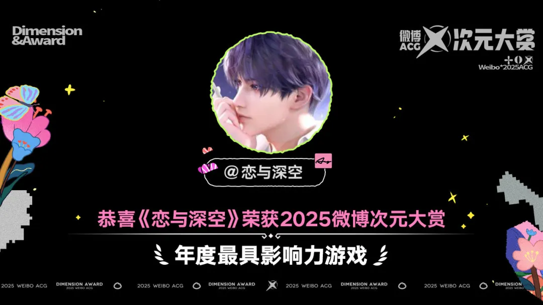 从具体资讯内容来看,年度奖项是品牌资讯的核心焦点。《恋与深空》《王者荣耀》《绝区零》《三角洲行动》《和平精英》《第五人格》等头部产品于年末集中发布获奖信息,涵盖“年度最具影响力游戏”“年度最佳平台生态运营游戏”“年度最佳角色扮演游戏”等奖项。此类信息借助社交平台年度节点同步扩散,有效放大了品牌声量,形成行业级话题共振。以《恋与深空》为例,该产品在12月31日发布“App Store中国游戏畅销榜第一”和“2025微博次元大赏年度最具影响力游戏”两条获奖资讯,对其产品的市场表现与行业认可度进行双重背书,强化了品牌在女性向游戏领域的领导地位。