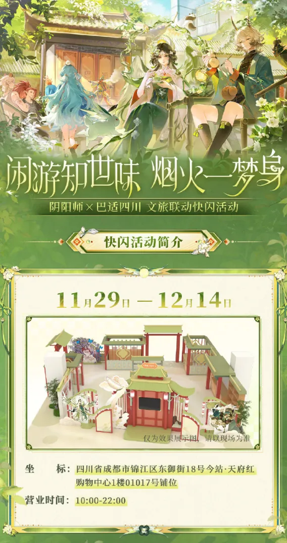 区域文化深耕成为中腰部产品的重要发力方向。《阴阳师》延续与“巴适四川”的文旅合作路径,通过快闪活动、一日店长 Cos、川剧变脸与互动谜题等形式,将地方非遗文化与游戏美术、角色演绎相结合,强化玩家对地域文化的情绪感知与参与感。