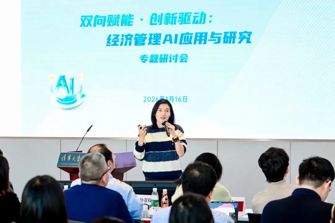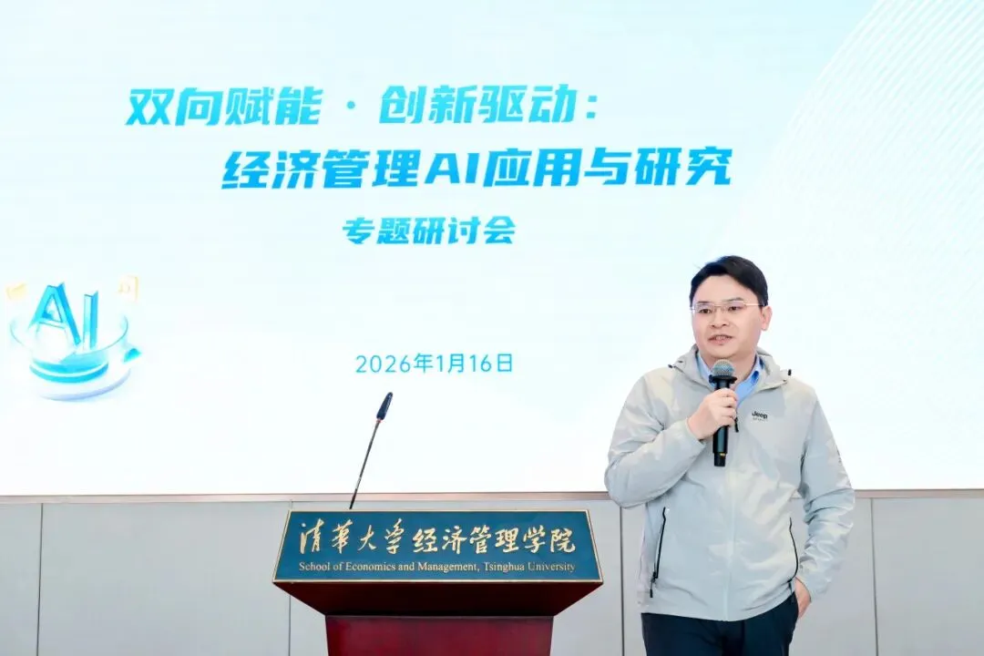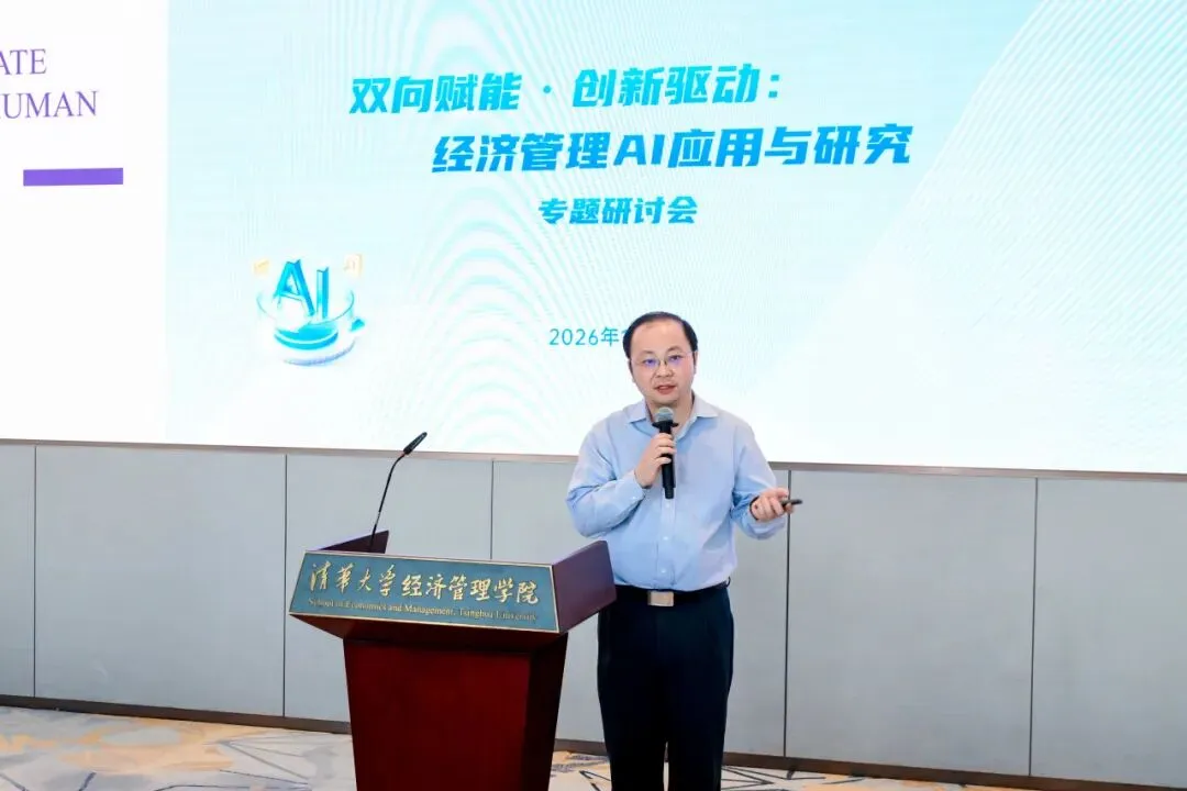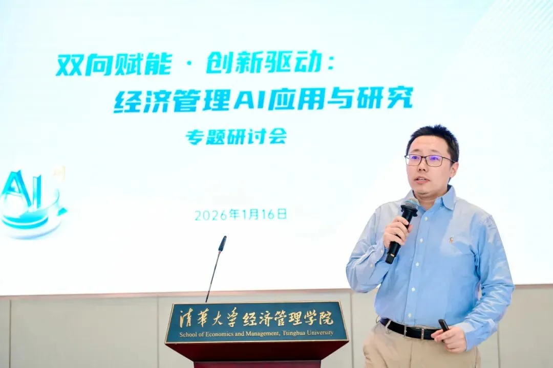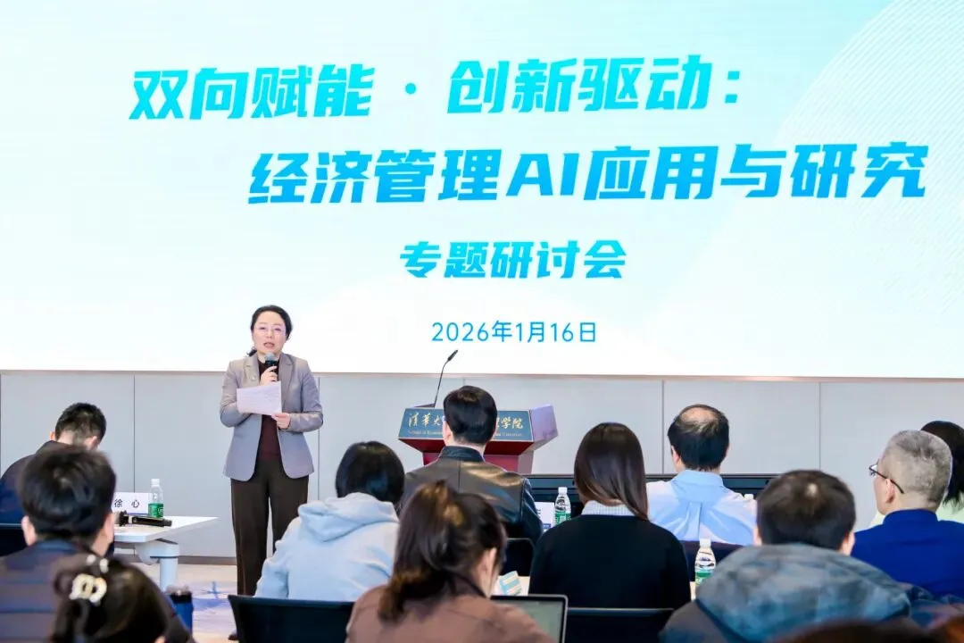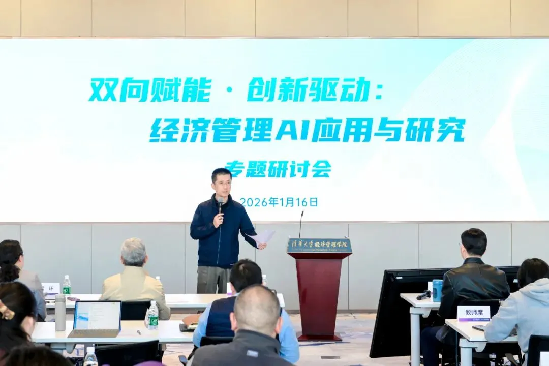 2026年1月16日,清华大学经济管理学院“双向赋能·创新驱动:经济管理AI应用与研究”专题研讨会在建华楼举行。本次会议响应国家“人工智能+”行动部署与高等教育学科交叉融合的发展趋势,聚焦人工智能与经管领域的深度融合,旨在搭建学术研究与产业实践的交流平台,赋能教师发展,促进内外协同合作,为经管学科高质量发展注入新动能。来自学院七个系的18位教师进行研究分享,150余位师生参与活动。研讨会由学院人工智能研究工作组组长、副院长徐心和学院人工智能研究工作组副组长、党委副书记刘庆主持。