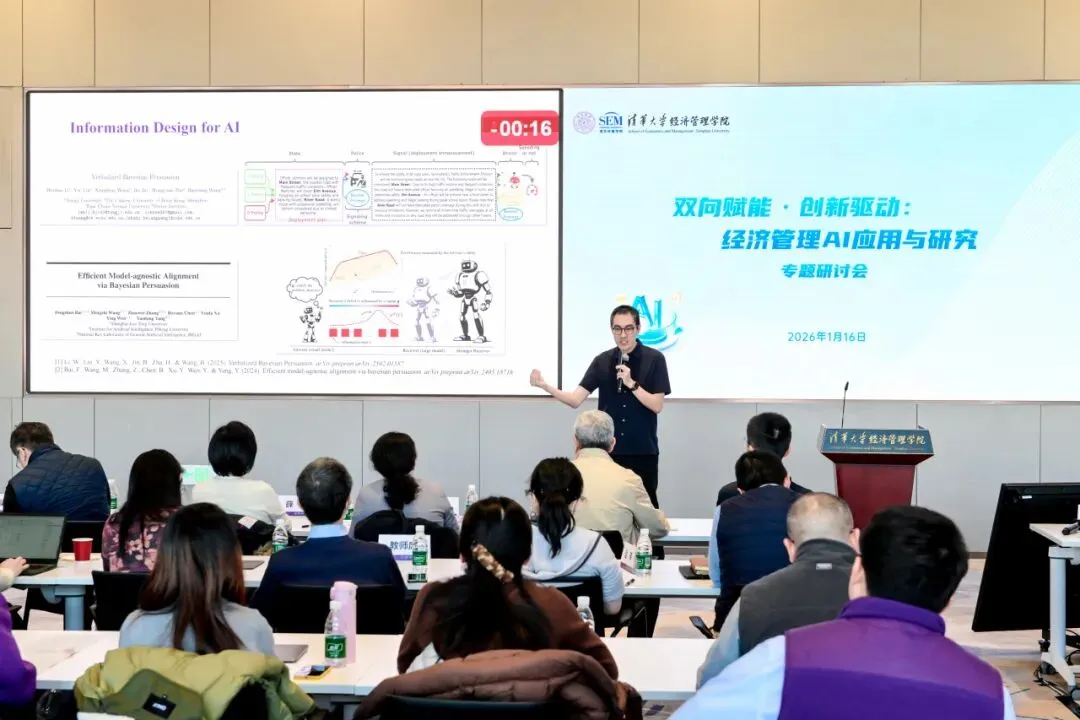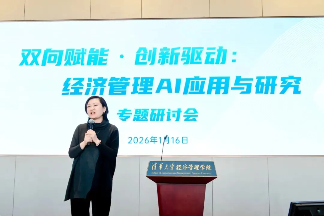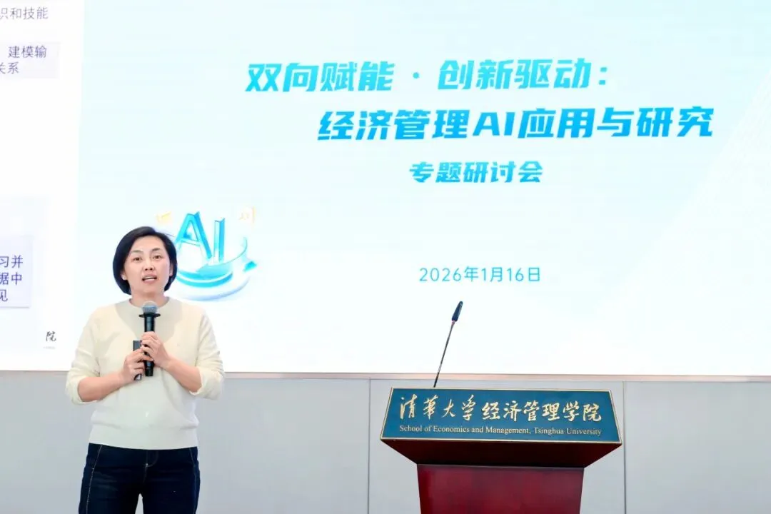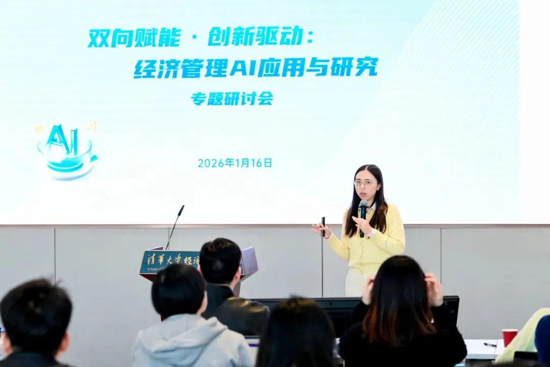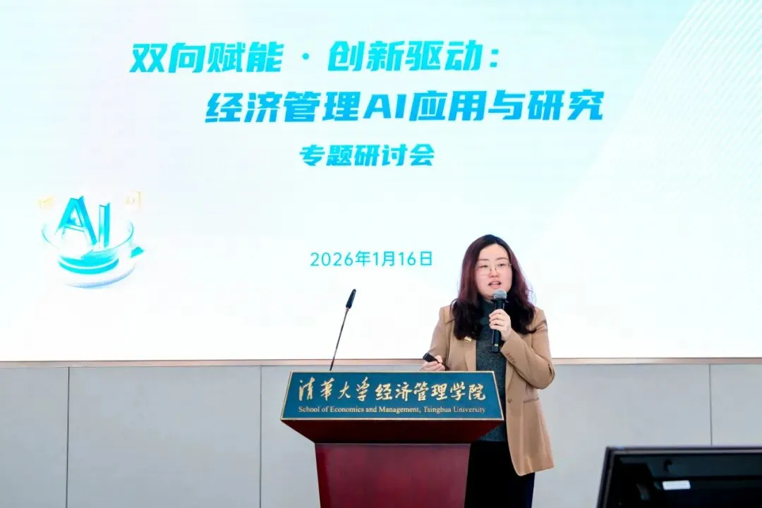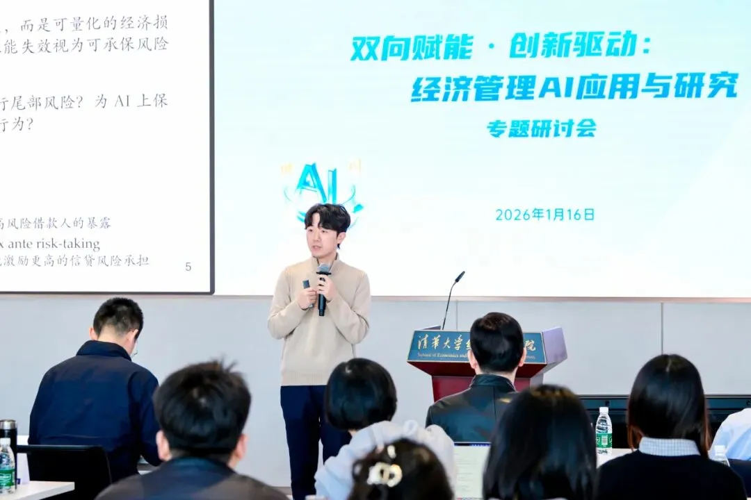 2026年1月16日,清华大学经济管理学院“双向赋能·创新驱动:经济管理AI应用与研究”专题研讨会在建华楼举行。本次会议响应国家“人工智能+”行动部署与高等教育学科交叉融合的发展趋势,聚焦人工智能与经管领域的深度融合,旨在搭建学术研究与产业实践的交流平台,赋能教师发展,促进内外协同合作,为经管学科高质量发展注入新动能。来自学院七个系的18位教师进行研究分享,150余位师生参与活动。研讨会由学院人工智能研究工作组组长、副院长徐心和学院人工智能研究工作组副组长、党委副书记刘庆主持。