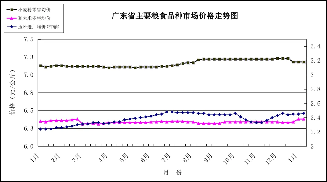 小麦进厂价2.78元,双周环比下降1.07%,同比下降0.36%;小麦粉批发价4.65元,同品种双周环比下降0.21%;小麦粉零售价7.18元,双周环比持平,同比上涨0.98%。