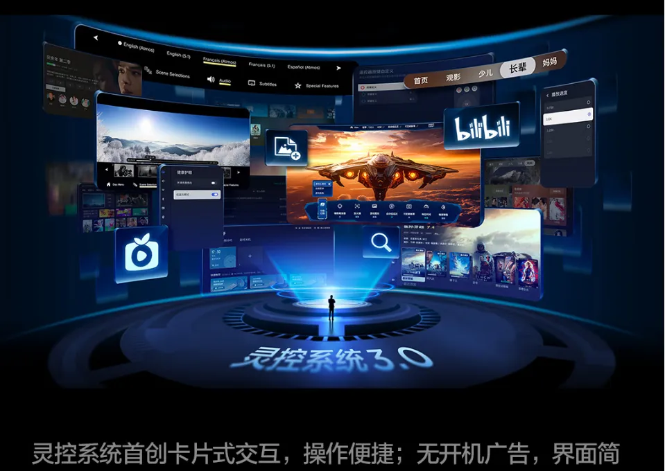 音效方面,与帝瓦雷联合调音的2.1.2声道系统,总功率高达77W,音质堪比万元级独立音响,低频震撼、中高频清亮,观影时氛围感拉满。支持AI语音控制,操作便捷适合老人小孩使用。无论是日常观影、观看赛事,还是轻度游戏,这款机型都能轻松胜任,堪称家庭影音的全能选手。