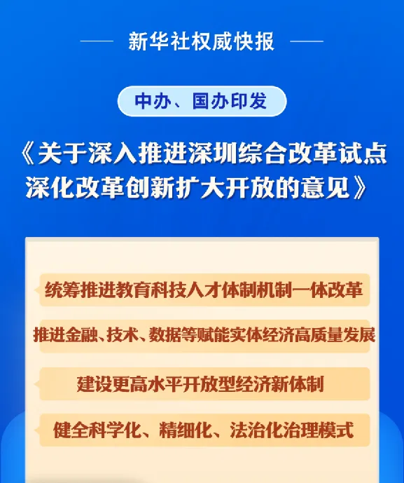 6月10日,中共中央办公厅、国务院办公厅印发《关于深入推进深圳综合改革试点 深化改革创新扩大开放的意见》(以下简称《意见》)。