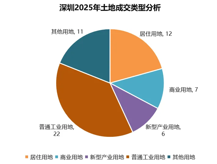 2025年普工业及产业用地成交最多为28宗,居住用地12宗。