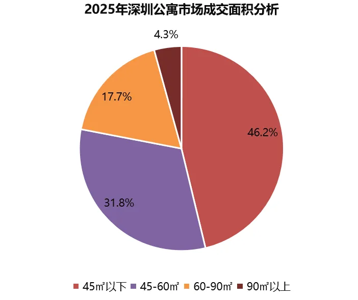 ► 面积45㎡以下公寓成交占比约46.2%;面积在45-60㎡占比31.8%;60-90㎡占比17.7%;90㎡以上占比4.3%;