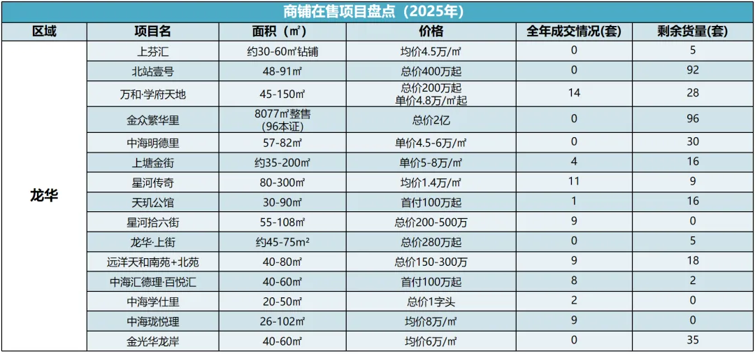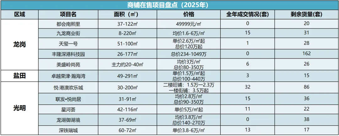 ► 今年,南山、福田等常年无商铺销售的区域也陆续有项目入市,带动市场整体活跃度持续回升。