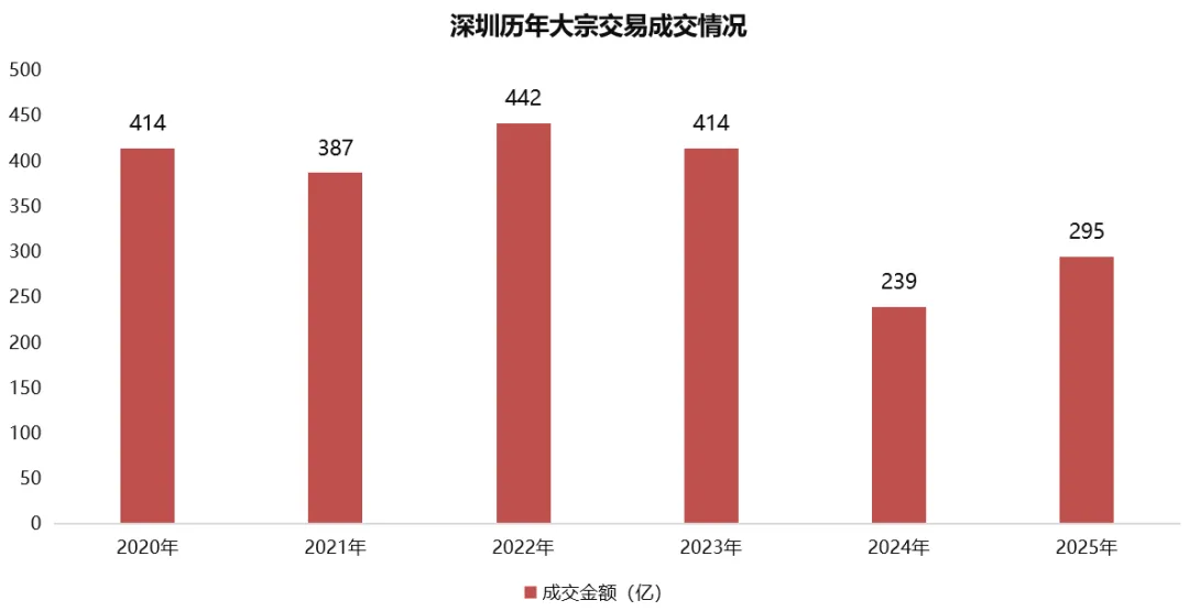 据不完全统计,2025年录得多宗大宗交易,成交金额达295亿元,同比去年增加56亿。