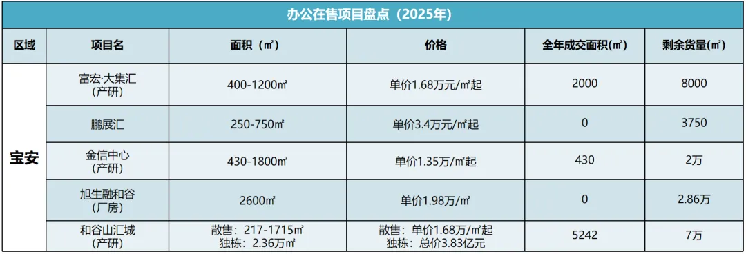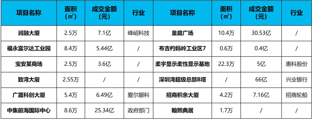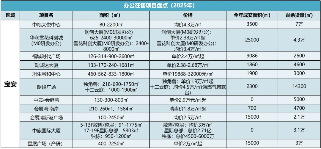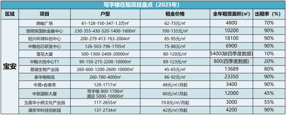 宝安写字楼成交面积居榜首,成交约11.88万㎡。