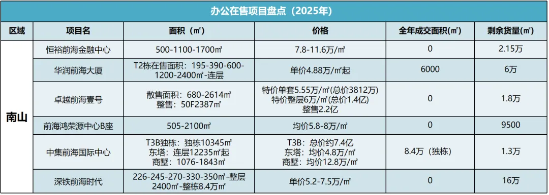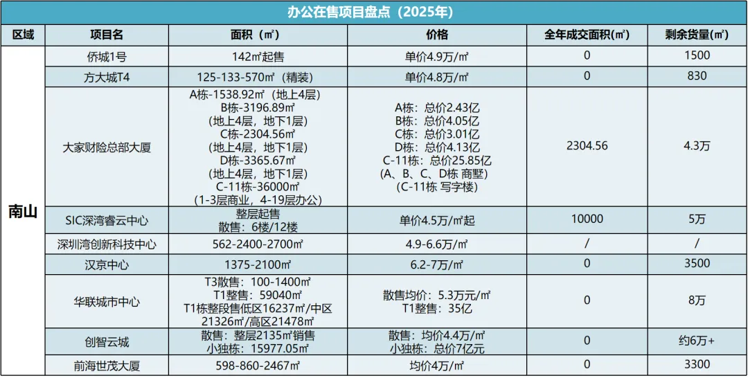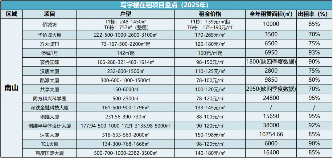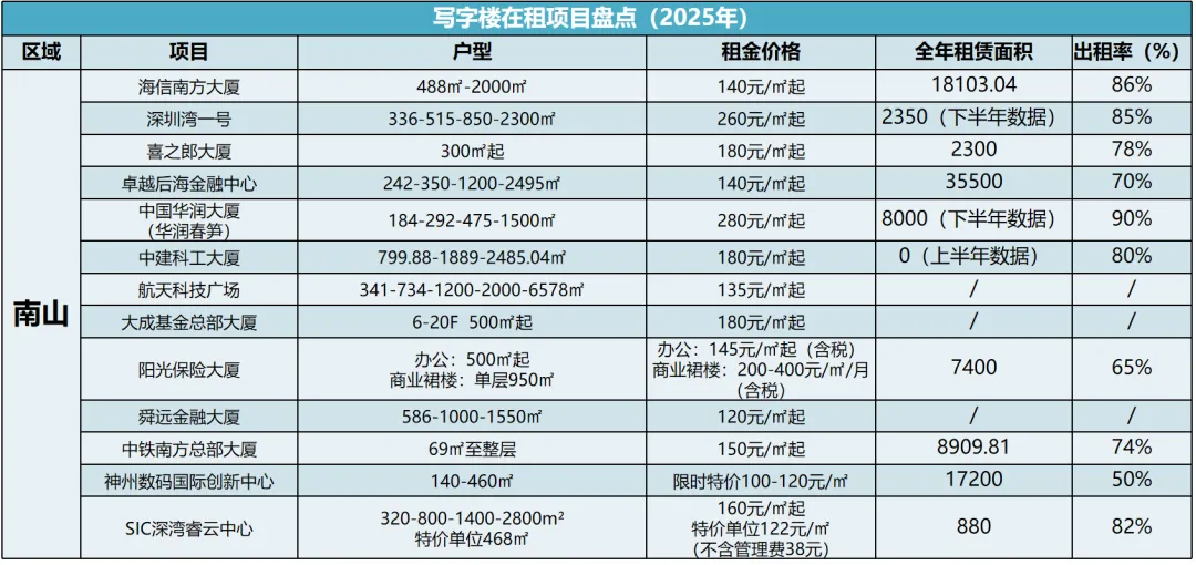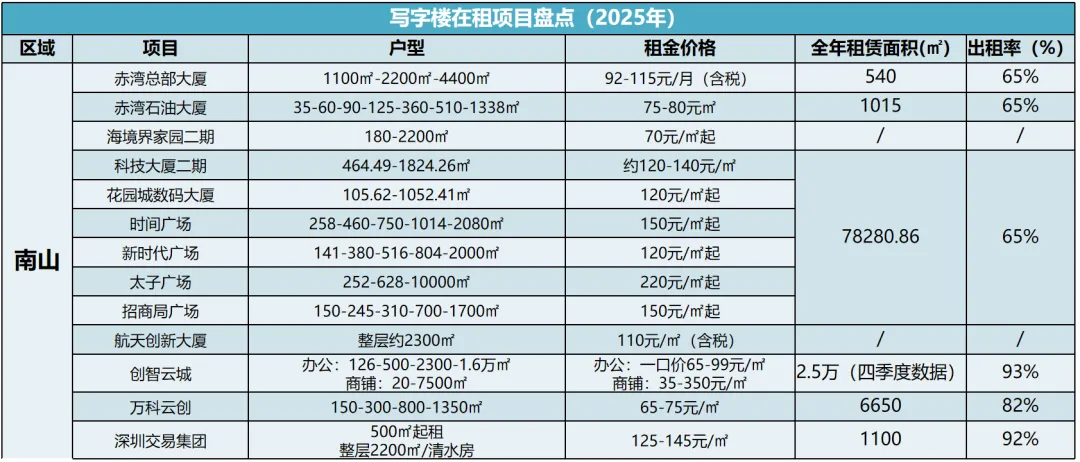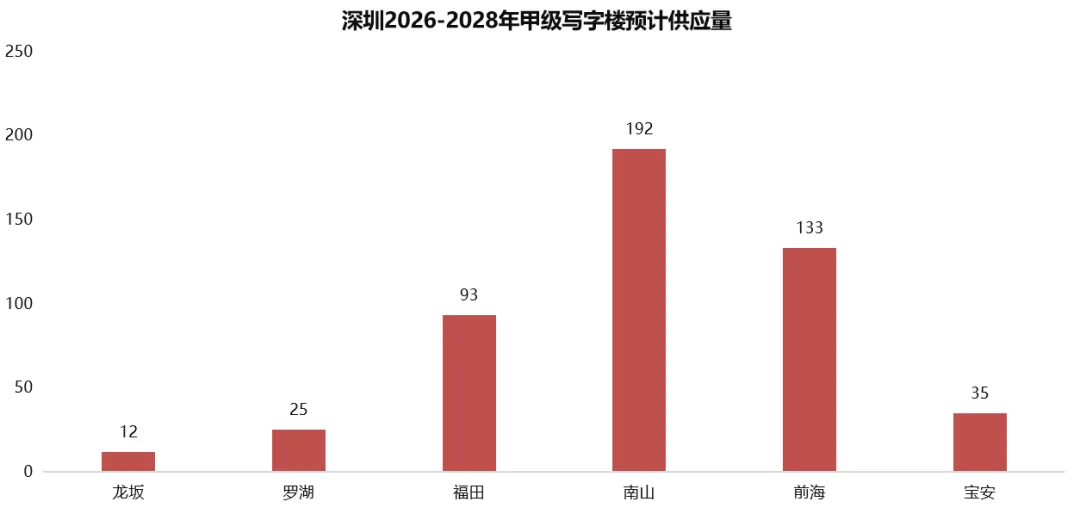 ► 粗略统计,深圳2026年-2028年所有写字楼预计供应量约850万,主要集中在南山和前海。