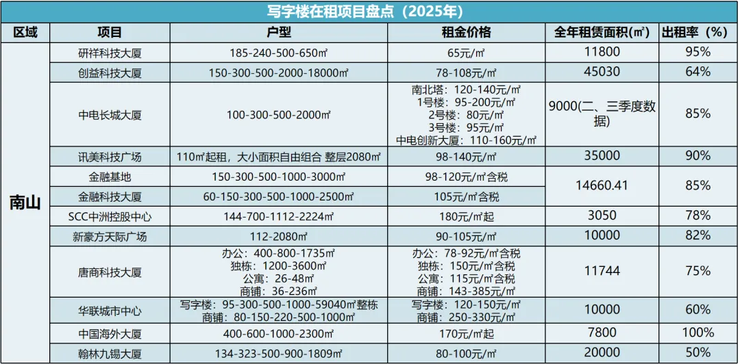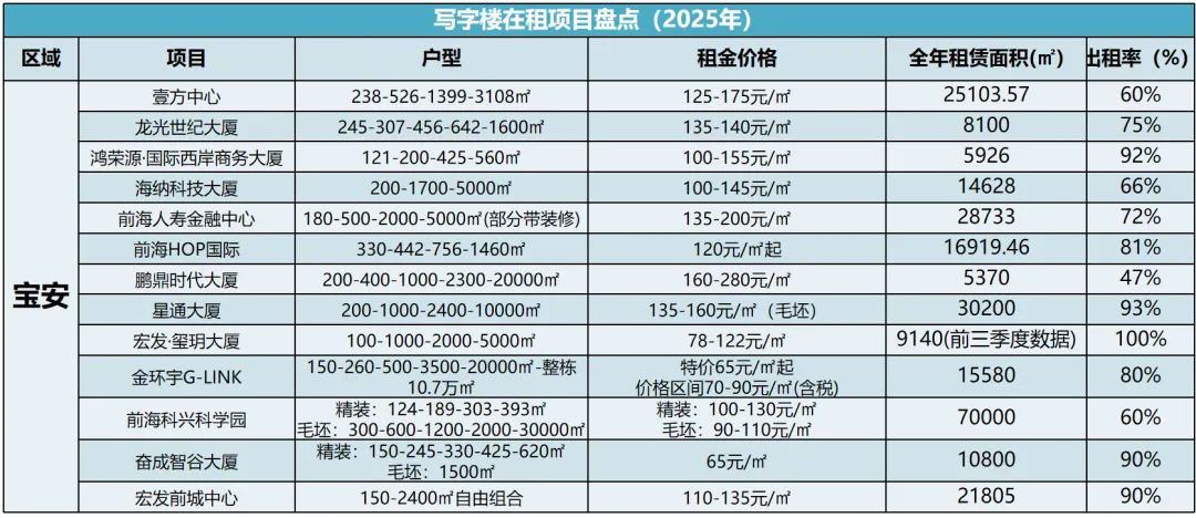 ► 预计2026年,深圳还将新增约170万㎡甲级写字楼。