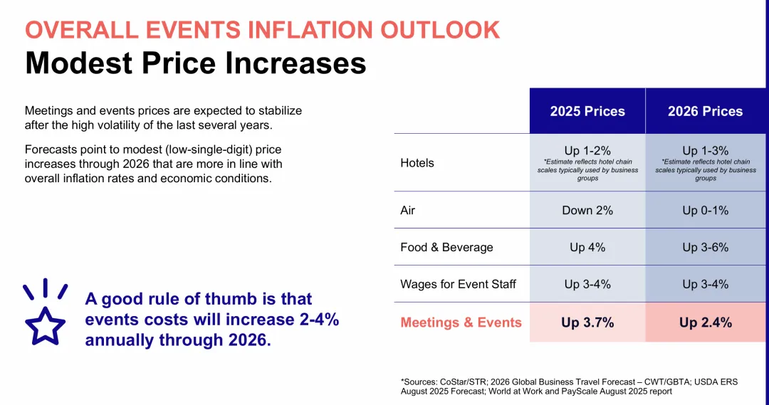Maritz在今年IMEX美国拉斯维加斯展会上发布最新年度报告,揭示了行业(主要是美国市场)的重要转折点:尽管2025上半年注册量下滑,但随着价格趋稳、酒店费率增速放缓,2026年前景正在转向乐观。报告首先关注了今年前半段令人担忧的数据表现。受地缘政治不确定性影响,2025年3-8月的活动注册量整体同比下降3%,其中受影响活动的平均降幅达11%。国际参会者的情况更为严峻,降幅达13-25%。春季市场充满不确定性时确实出现疲软,但这种态势并未持续。现在国际差旅正在回归。更有意思的是,报告揭示了一个反常识的发现:越临近活动才注册的参会者,实际价值反而更高。O'Malley解释说:数据显示,预订时间越晚的参会者对活动的承诺度越高,他们会购买更多附加服务——晚间活动门票、额外的认证培训等。这提醒组织者,早鸟折扣期过长可能适得其反。在经历了近几年的价格飙升后,酒店市场终于迎来了令人欣慰的消息。尽管酒店业者从关注入住率转向维持日均房价以应对需求疲软,但增速已明显放缓。春季预订放缓让许多市场急需订单,现在正是议价的好时机。这或许是报告中最令人振奋的发现——在经历了数年的价格剧烈波动后,会展行业的整体定价终于显现出稳定迹象。这意味着组织者可以更准确地制定预算,减少因价格不确定性带来的风险。随着消费者行为的演变,支付技术也在经历深刻变革。 Maritz预测,包括信用卡在内的实体支付方式将逐步被非接触式和数字化方式取代。- 代币化支付(如Venmo、PayPal)强化交易安全