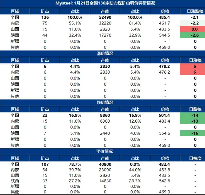 【行业信息】1月21日煤炭信息汇总情况