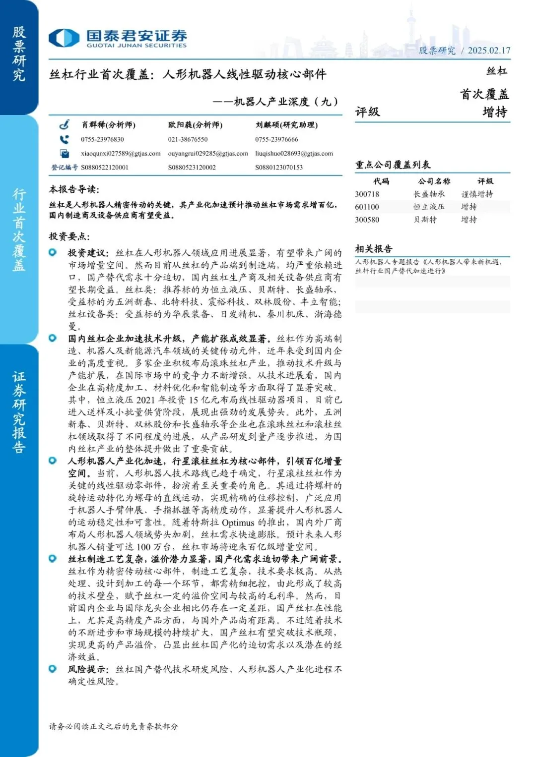 2025年机器人行业丝杠产业链深度报告:不仅受益自主可控, 更受益人形机器人市场爆发|附71页PDF文件下载