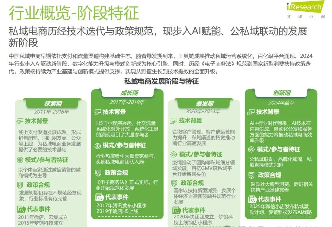 随着技术持续迭代与相关政策逐步完善,私域电商已迈入AI赋能、公私域联动的全新发展阶段。展望未来,在消费激励政策落地、关键技术不断突破以及经营边界进一步拓宽等多重因素的共同驱动下,行业有望实现更深入的演进——具体表现为运营效率的持续优化、技术应用效果的实质性提升,以及成熟商业模式向跨境领域的有效输出。