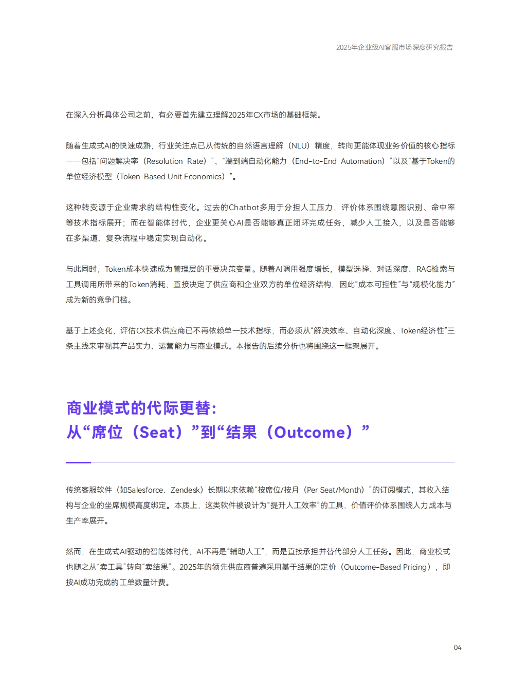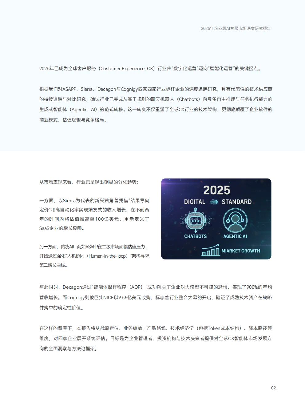 2025 年企业级 AI 客服市场迎来关键拐点,行业已从传统聊天机器人全面转向具备自主推理与任务执行能力的生成式智能体(Agentic AI),实现从 “数字化运营” 到 “智能化运营” 的范式转移,商业逻辑、技术架构与竞争格局被彻底重塑。