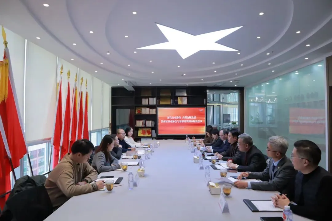 在泰和泰(贵阳)律师事务所,律所主要负责人详细介绍了近年来的经营状况、业务布局、团队建设及未来发展规划。同时,作为贵州资本市场服务联盟成员,结合自身经营实践,就如何发挥贵州资本市场服务中心“四库一联盟”功能作用,为辖区搭建资源对接平台、助力行业发展等方面提出了意见和建议。协会相关负责人认真倾听每一条意见建议,逐一回应会员关切,并对律所在法律服务领域取得的成绩给予充分肯定。