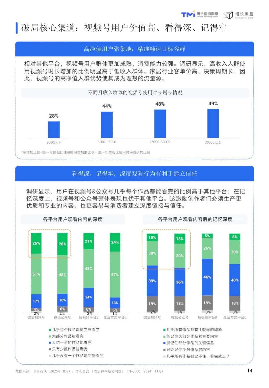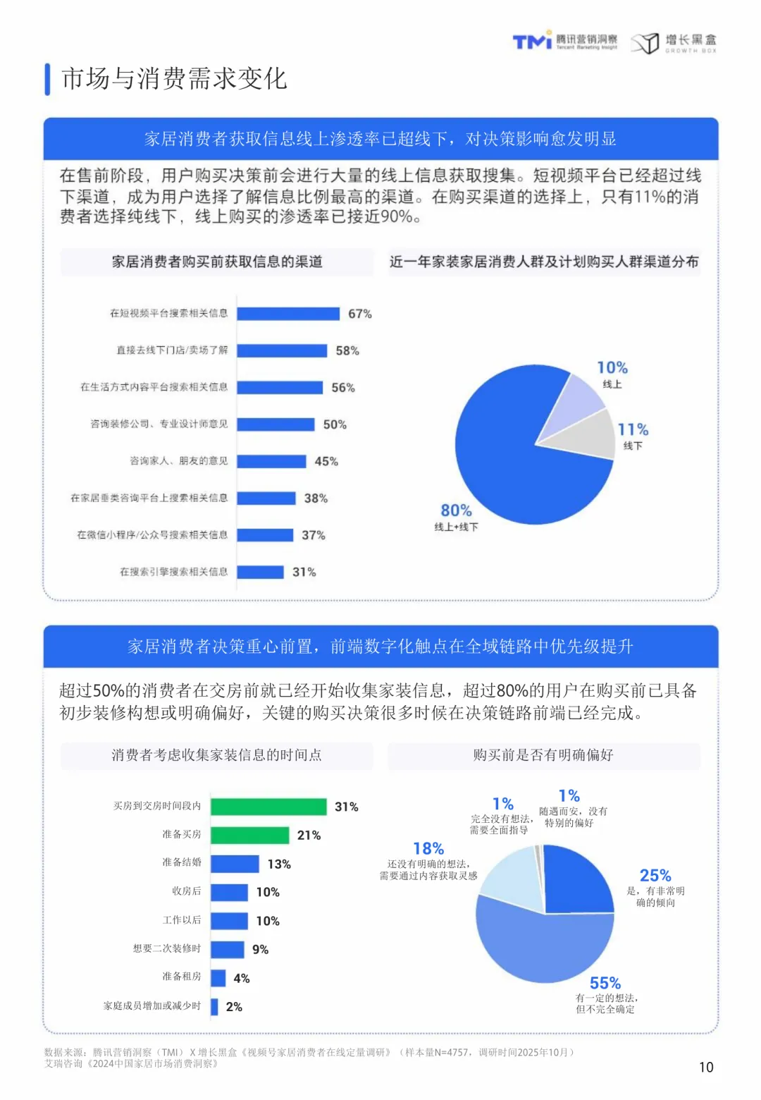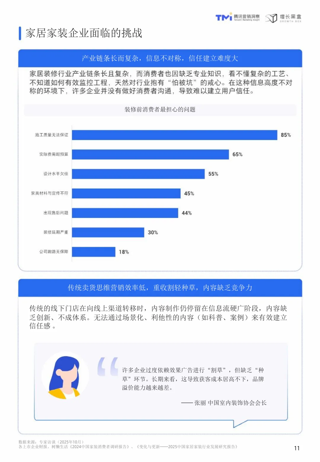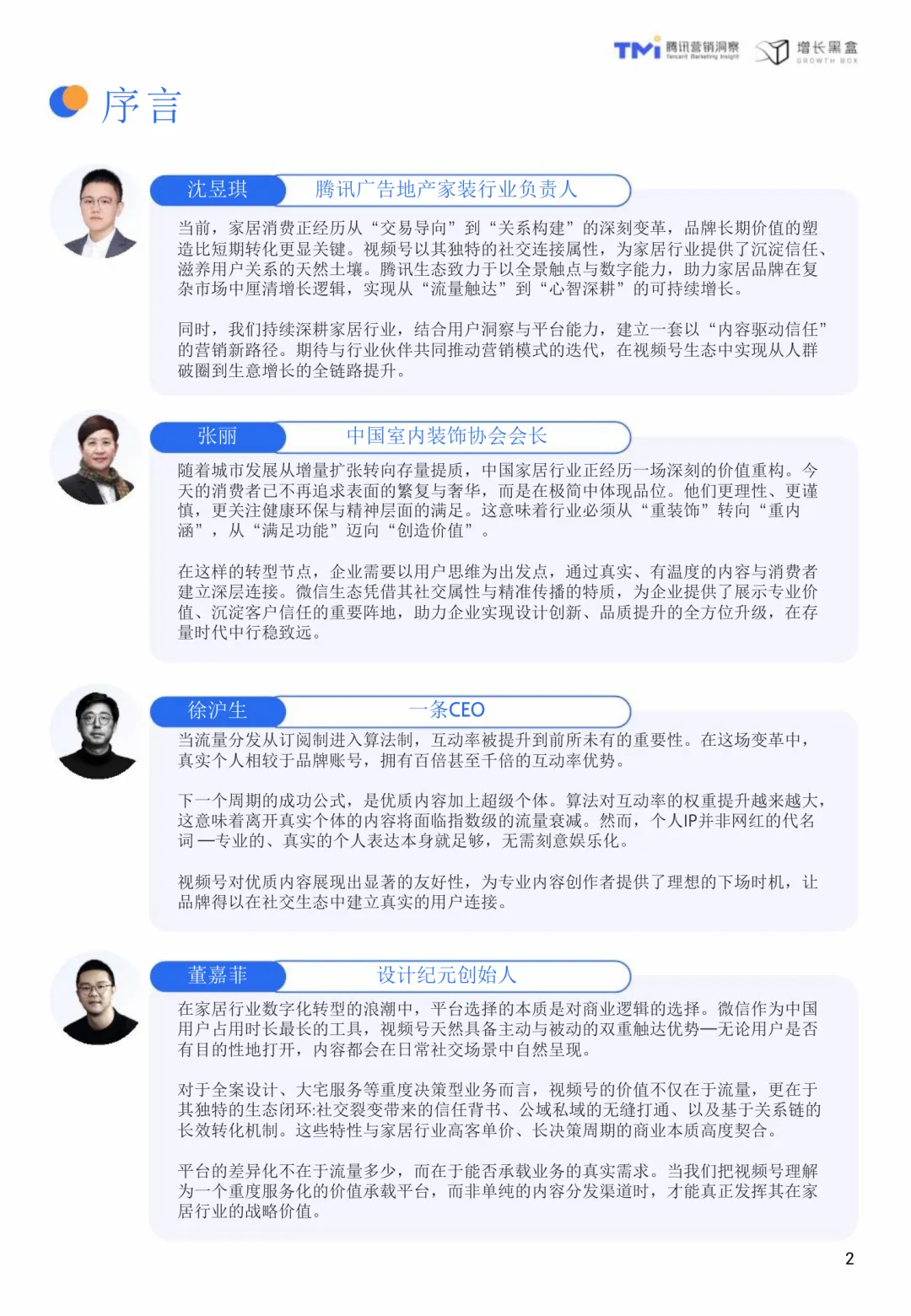 视频号家居消费趋势洞察与人设营销指南(2026版)聚焦于当前家居行业在消费行为、营销逻辑和平台应用上的深刻变化。随着市场从增量扩张转向存量提质,消费者更加理性,注重健康环保与精神满足,行业需从“重装饰”转向“重内涵”,以创造价值为核心。在这一背景下,视频号凭借其社交属性和内容传播能力,成为家居品牌建立信任、深化用户关系的理想平台。相比传统营销模式,人设营销通过将品牌形象转化为具体人格,借助真实、专业、有温度的内容,构建与高价值用户的深度连接,实现信任驱动的增长。视频号家居用户呈现出收入高、消费力强、对设计美学和品牌文化敏感等特点。他们更倾向于追随设计师和品牌账号,愿意为“软价值”支付溢价。熟人社交推荐显著提升内容可信度,社交关系的真实度是平台的核心竞争力。内容方面,精准的人设定位是关键。创始人和达人IP对高价值人群具有更强吸引力,专业性与亲和力缺一不可。内容策略应以利他为导向,围绕设计鉴赏、品牌故事和家居服务展开,满足用户需求的同时建立专业形象。公域到私域的协同转化至关重要,视频号作为连接器,需设计有效的承接机制和长期培育策略。研究方法包括问卷调研、深度访谈和案例分析,覆盖4757位用户、8位行业专家及6位视频号博主,结合腾讯视频号平台数据,全面解析家居家装行业的用户画像、内容偏好与社交转化行为特征。TGI指标用于衡量特定群体对某项特征的偏好强度,为内容策略提供量化依据。视频号不仅是一个内容分发渠道,更是一个承载重度服务的生态平台,其社交裂变、公私域打通和长效转化机制,与家居行业的高客单价、长决策周期高度契合。通过人设营销,品牌可以在视频号生态中实现从流量触达到心智深耕的可持续增长。