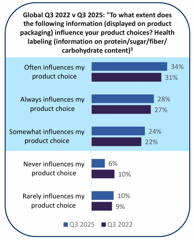 图表1:健康标签对购买决策的影响变化(2022 vs 2025):