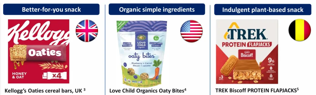 在具体落地上,品牌开始玩起了"场景化叙事"。家乐氏的Oaties燕麦棒主打"增强饱腹感",对准的是需要控制体重的中年人;加拿大Love Child Organics的Oaty Bites燕麦零食只有5克糖,用有机认证、无麸质、非转基因这些标签打消家长顾虑,目标用户是4岁以上的孩子。
