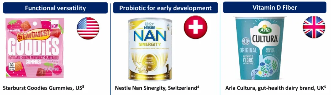 低聚糖是目前最主流的选择。雀巢的Nan Sinergity婴幼儿配方就用了6种人乳低聚糖(HMO),这些成分在结构上跟母乳里的一模一样,能帮助婴儿建立更健康的肠道菌群。英国品牌Arla Cultura则把可溶性玉米纤维加进酸奶和饮品,每100克提供1.5-1.6克纤维,同时搭配8种益生菌和维生素D,主打早餐和零食场景。