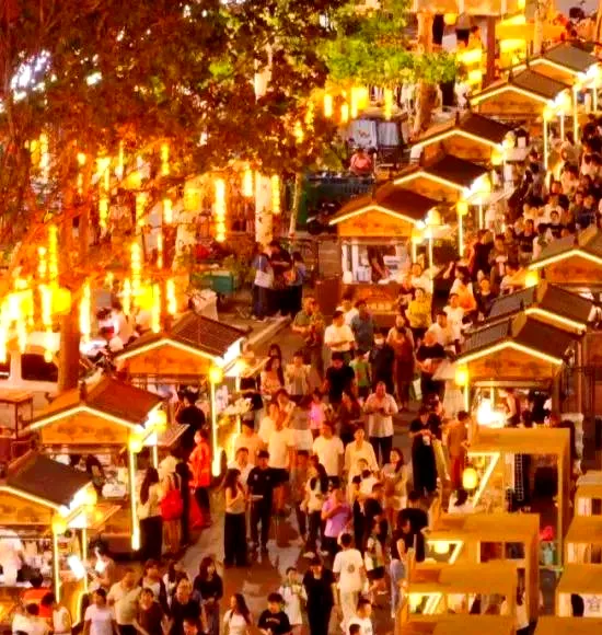 报告显示,乡村古镇夜游的在地化与生活化转向明显,从服务游客的观光节点,转向兼顾服务本地居民的周末常态化休闲生活空间。一是从单纯的亮化向多元体验业态发展;二是从临时性向常态化和季节性发展;三是普遍开始采用“轻社交、在地化、亲子友好、低成本”的夜间产品组合。