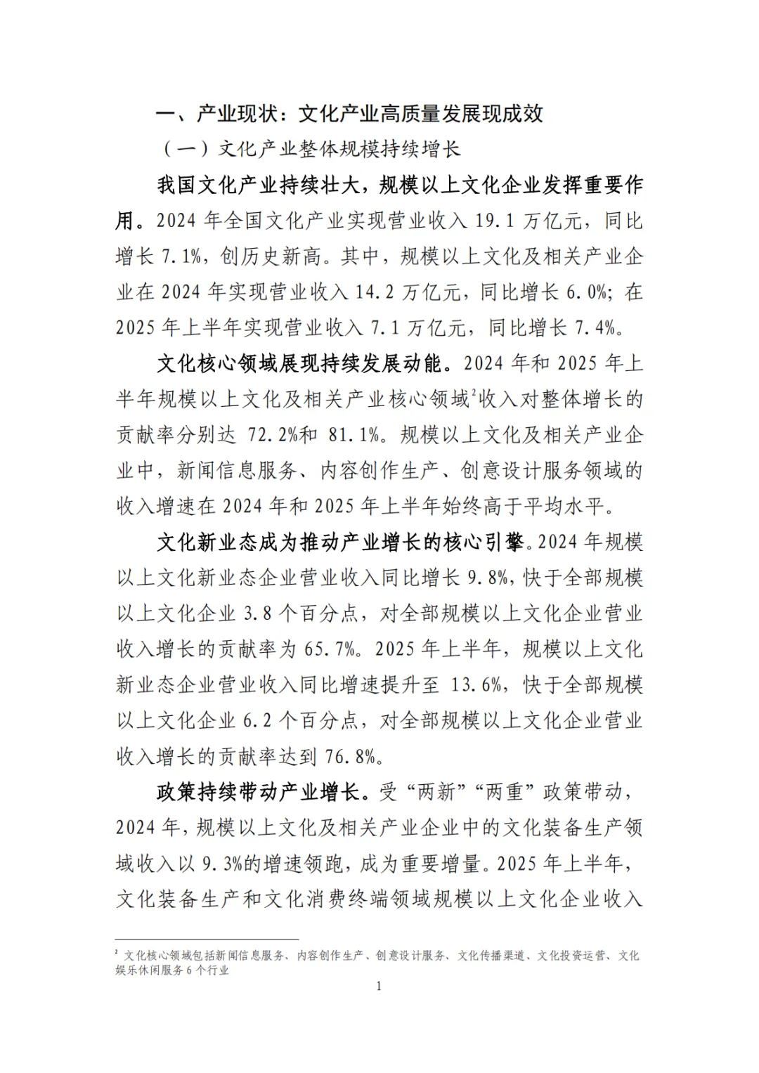 产业规模持续增长:2024年全国文化产业营业收入达19.1万亿元,同比增长7.1%,创历史新高。文化新业态成为增长核心引擎,2025年上半年规模以上文化新业态企业收入同比增长13.6%。