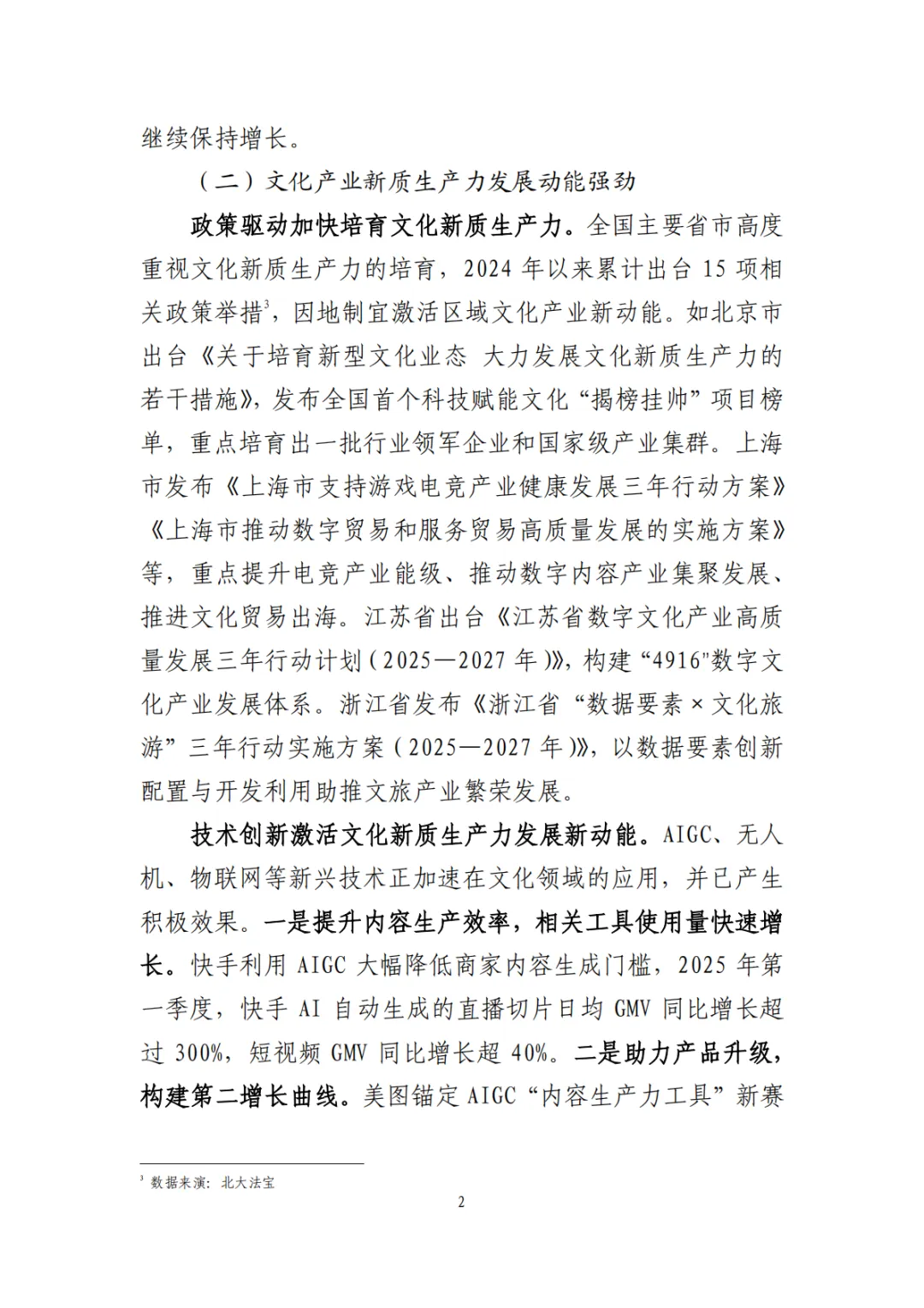 新质生产力发展强劲:各地出台多项政策培育文化新质生产力,AIGC、无人机、物联网等技术在文化领域广泛应用,提升内容生产效率、消费体验与文化出海能力。
