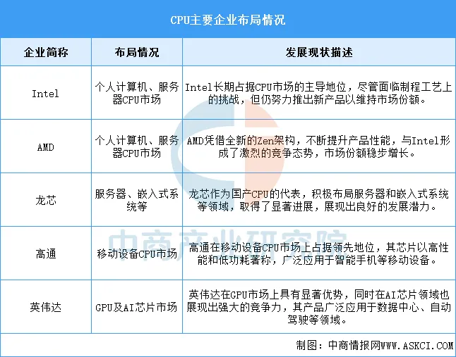 CPU行业重点企业