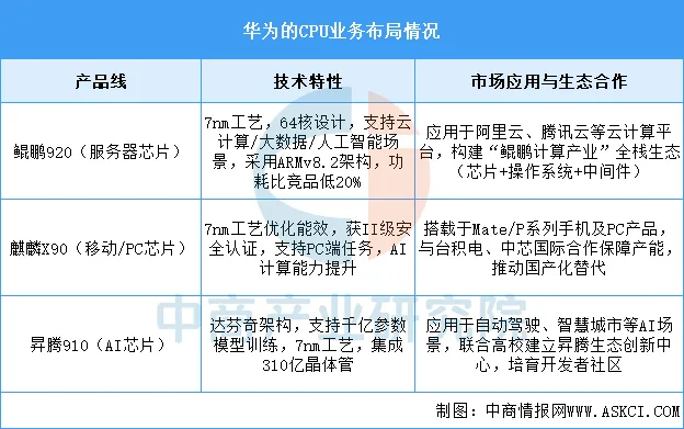华为构建了覆盖服务器(鲲鹏)、移动/PC(麒麟)、AI计算(昇腾)的全场景CPU矩阵。鲲鹏920通过高性能与低功耗抢占云计算市场,麒麟X90突破PC端安全认证并推动国产替代,昇腾910则强化AI算力优势。其技术路径以自主架构创新和全栈生态协同为核心,2024年PC市场出货量达430万台(市场份额11%),位列中国第二,未来计划持续挑战英特尔主导的桌面CPU市场。