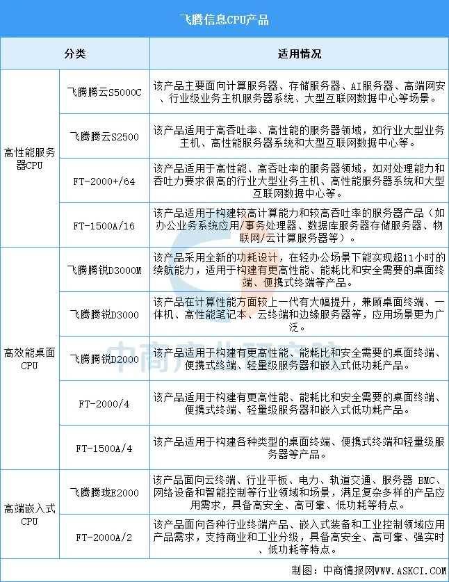 飞腾信息技术有限公司是CPU研发设计的国家队、国内领先的自主核心芯片提供商,由中国电子信息产业集团、天津市滨海新区政府和天津先进技术研究院2014年联合支持成立。