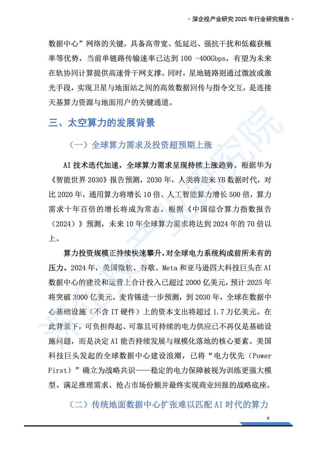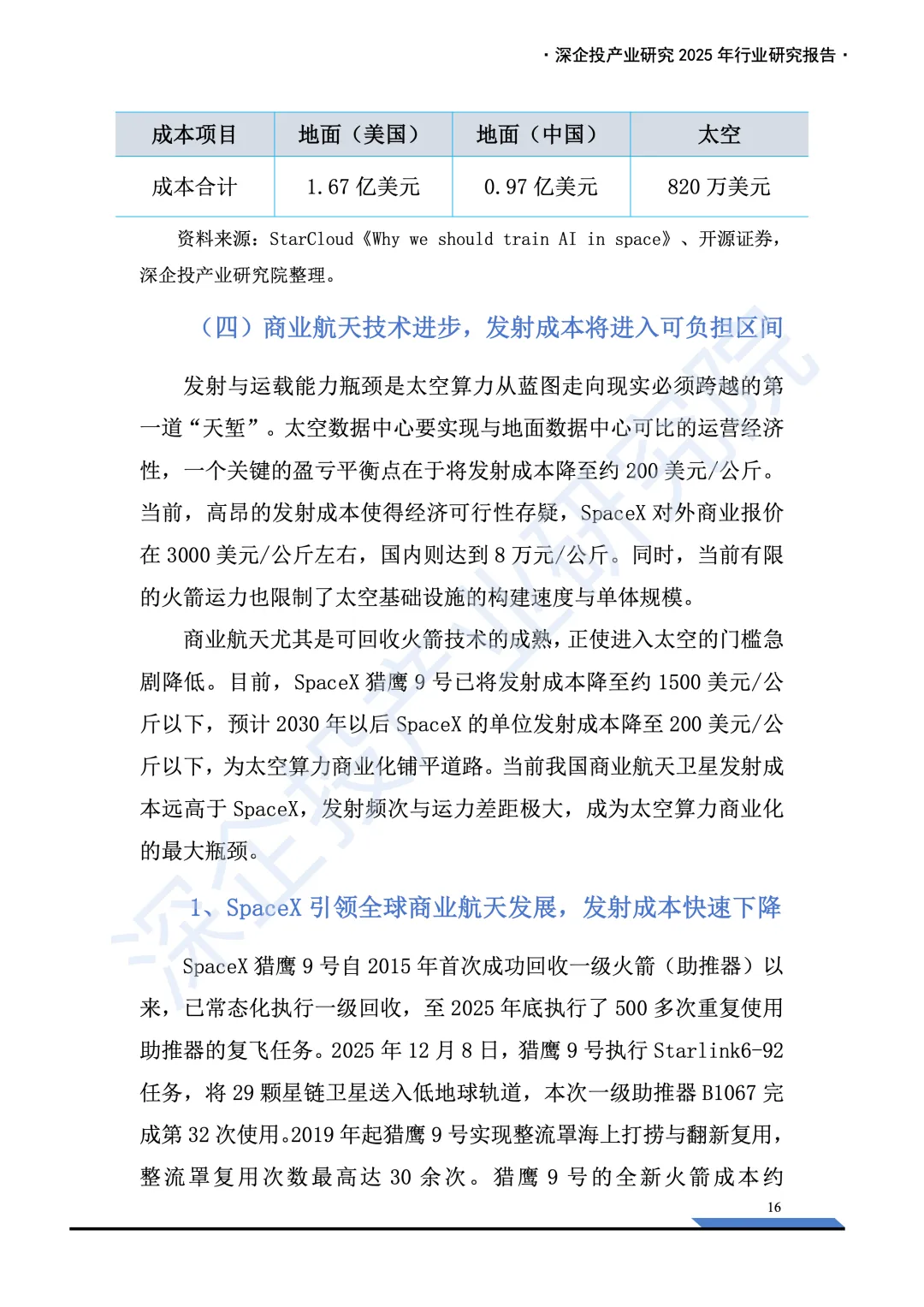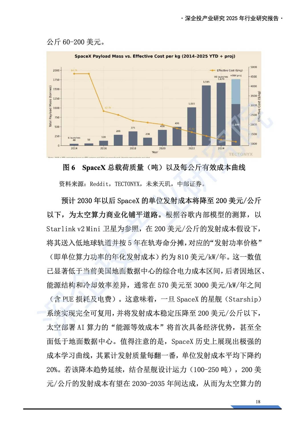 报告预测,到2030年太空算力将迎来爆发式增长。随着发射成本下降和技术突破,太空数据中心将从小规模试验走向大规模商用。