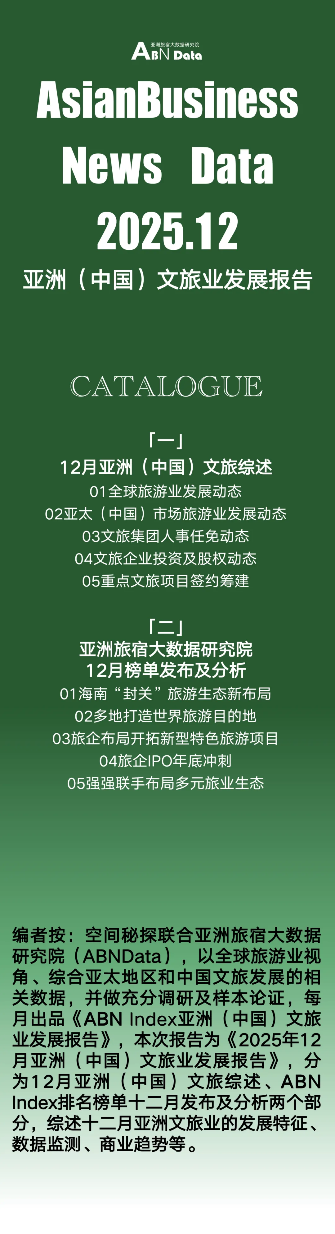 中国方面,海南自贸港全岛封关运作首月,入境旅游市场政策红利加速释放、实现“开门红”。入境旅游市场呈现的三大变化:入境客流规模快速攀升,市场活力持续迸发。2025年12月,海南接待入境过夜游客达77.3万人夜,较2024年增长59.5%,入境旅游市场全面超越疫情前水平。俄罗斯、东南亚及港澳台地区等传统客源市场稳定增长,欧美、澳新等远程市场同样表现亮眼。其中,英国、法国、意大利、西班牙、澳大利亚等国家2025年12月游客量同比增长分别为56%、83%、144%、62%、52%。旅游消费形态加速升级,深度度假特征凸显。入境旅游消费同步攀升,2025年12月总花费达14140万美元,同比增幅63%。离岛免税购物热度不减,化妆品、国货精品等品类备受青睐,消费重心正从单一购物向深度体验转型。同时,入境游客停留时间明显延长,人均停留夜数由2024年的3.37夜提升至今年的3.96夜,深度度假特征更加突出,彰显了海南高品质度假旅游的独特魅力和综合竞争力。全岛封关运作首月,海南入境旅游市场在规模、结构和质量上均呈现出积极而深刻的变化,实现了良好开局。