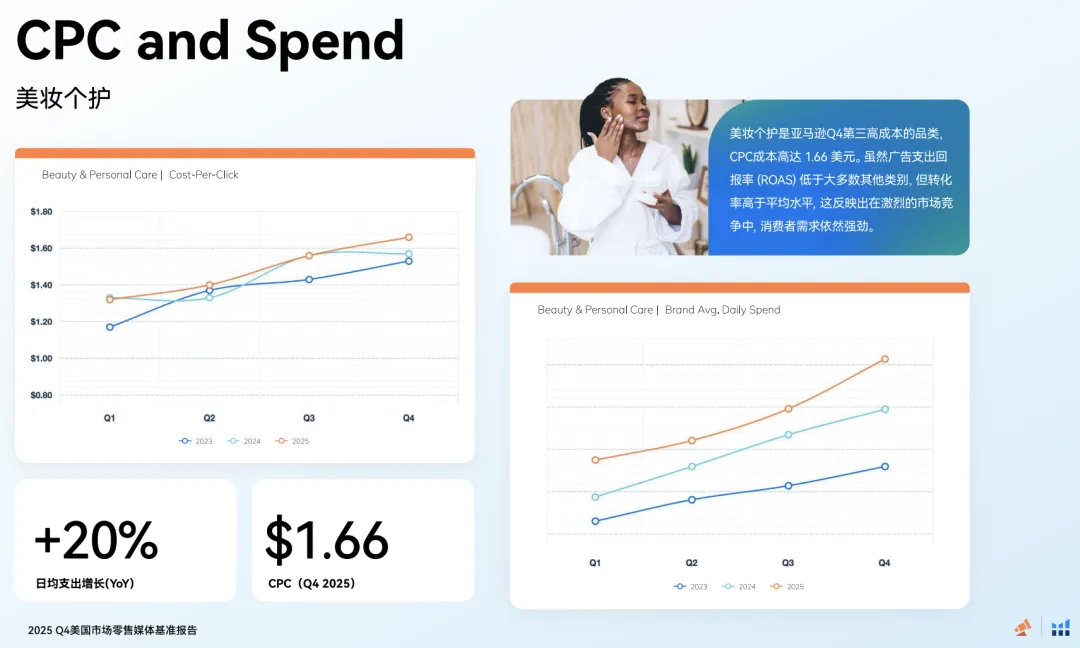 CPC 在 Q4 明显上升,而 ROAS 普遍承压下滑。