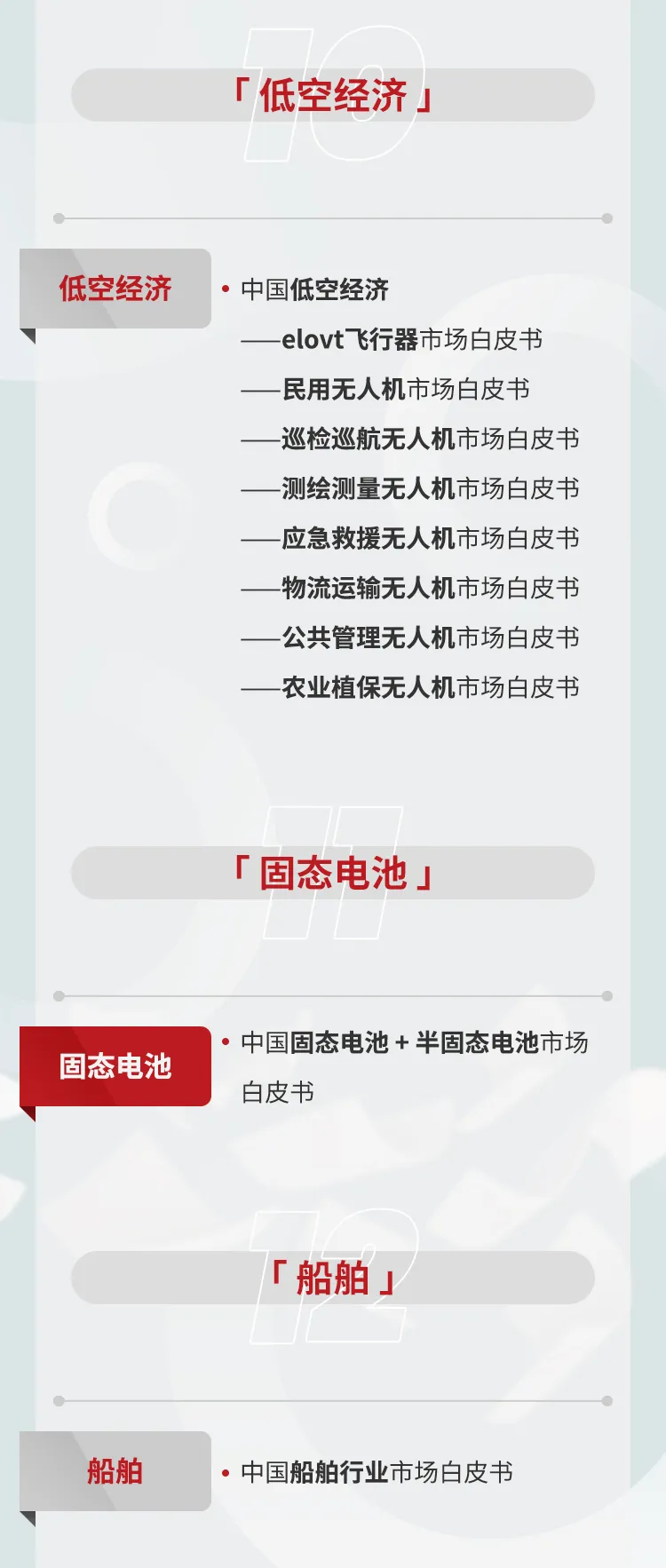 锚定高增长新兴赛道,重点聚焦数据中心行业,研究维度从国内建设市场延伸至企业出海建设市场,并着重开展数据中心应用产品专项调研;同步覆盖芯片行业,研究范畴囊括产品、芯片生产流程及生产设备;深度剖析新能源领域,涵盖储能国内发展与出海布局,以及核能板块中的可控核聚变市场、氢能等新兴能源赛道;瞄准前沿热点方向,重点关注固态电池、人形机器人、商业航天、工业 AI 服务等领域,全方位解码各赛道底层逻辑与潜在市场机会。