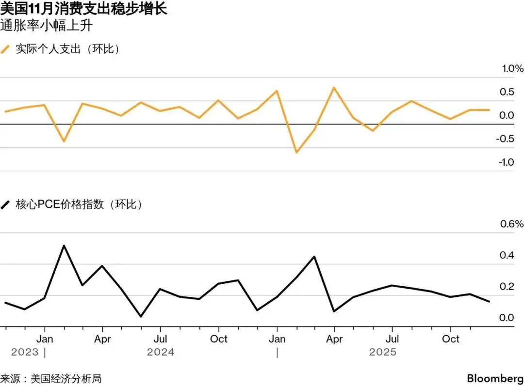 美国经济数据继续展现韧性:第三季度GDP增长年率上修至两年来最快的4.4%,11月消费者支出环比稳健增长0.5%,初请失业金人数维持在低位。