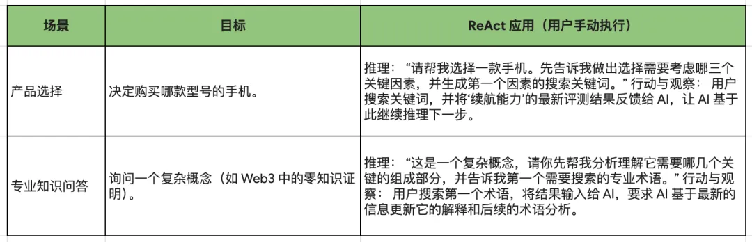 推理与行动(Reason and act, ReAct)提示是一种范式,通过将推理和行动结合到一个思想 - 行动循环中来工作。LLM 首先对问题进行推理并生成行动计划。然后它执行计划中的行动并观察结果。接着,LLM 使用观察结果更新其推理并生成新的行动计划。这个过程持续进行,直到 LLM 找到问题的解决方案。