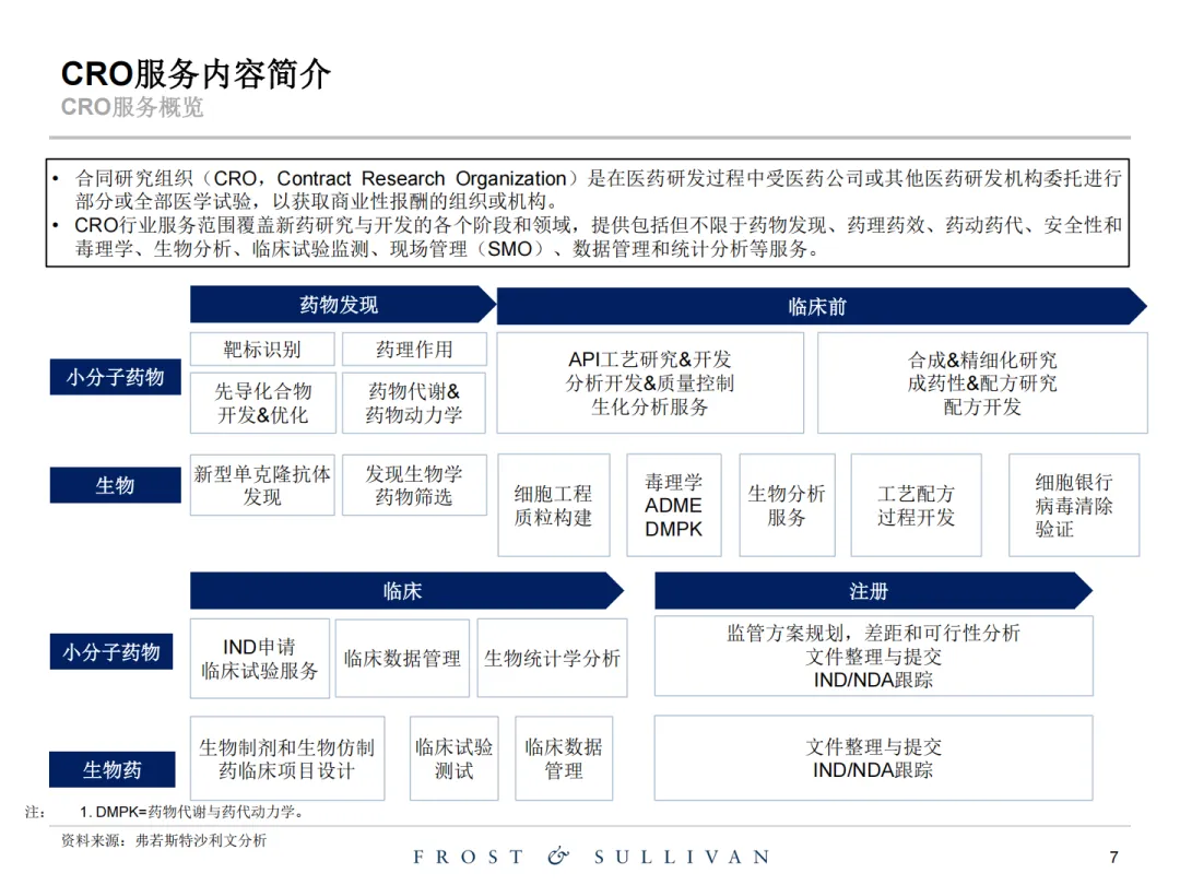 全球生物医药市场保持稳步增长,2019至2024年复合年增长率6.3%,2024年起增速将进一步提升至8.8%。中国市场增速大幅领先全球,同期复合增长率分别达10.9%和11.5%,抗体药物作为核心细分领域表现尤为突出,中国35.4%的增速远超全球10.5%的水平。CRO行业依托全流程服务能力快速发展,中国企业凭借成本优势承接海外项目,行业整体受老龄化、技术突破、政策支持等多重因素驱动,同时也面临竞争加剧、研发痛点等挑战,AI药物设计、全人源技术等新趋势正重塑产业格局。