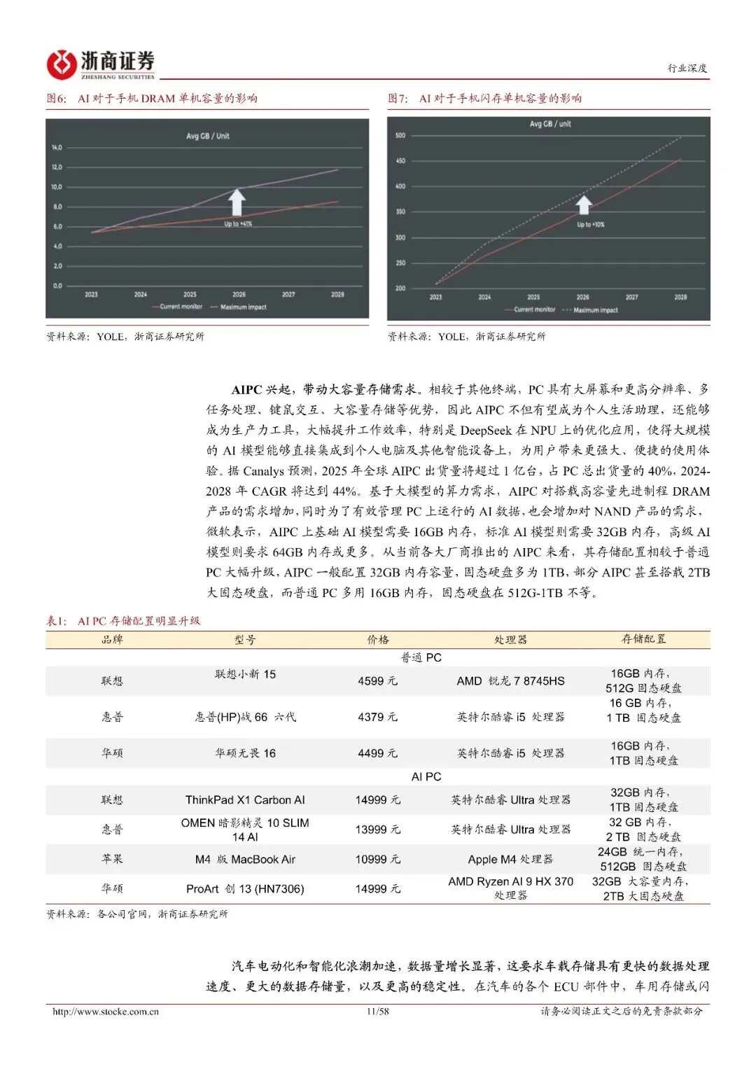 AI训练与推理对显存带宽及容量的迫切需求,正驱动存储行业进入新一轮成长周期,存储产品呈现量价齐升态势。随着AI应用愈加广泛,特别是在深度学习、图像识别、自然语言处理等数据密集型领域渗透,存储的需求呈现明显增长。端侧方面,生成式AI在端侧的集成,正在引领智能手机行业变革,AI手机将有力推动单机存储容量再次升级。考虑到建设厂房、新增产线、购置设备、材料等需要一定周期,因此原厂在短期内快速扩充产能难度较大,供给侧紧张趋势也将持续。
