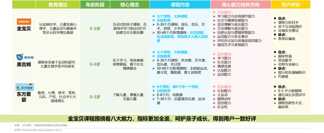 头部品牌通过标准化服务体系与师资培训,有效提升了用户信任度,以金宝贝为例:课程体系的高认可度,则证明了其科学分龄理念已被市场广泛接受。其师资与服务维度近乎满分,说明其成功解决了行业最棘手的人力非标准化痛点,通过系统培训确保了体验一致性。这揭示了早教消费的决策本质:家长在为确定性付费——确定性的专业、确定性的安全和确定性的积极体验。
