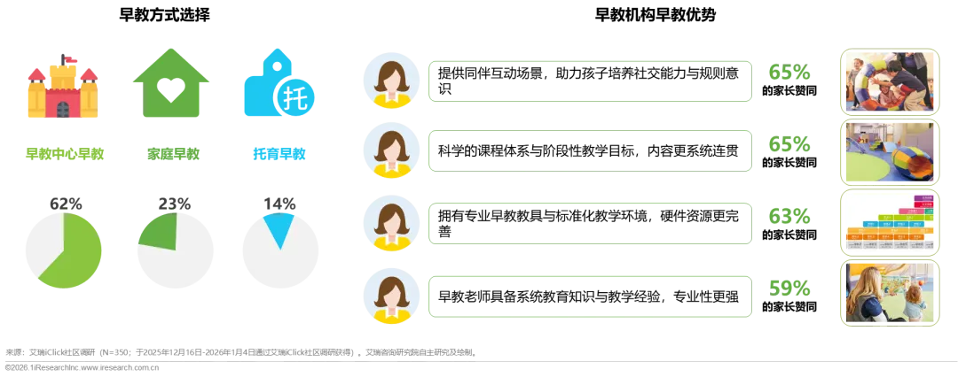 家长更倾向于专业机构提供的早教服务。家长不仅看重教学本身,还看重早教机构提供的社交环境和专业指导。早教机构其实是在提供一种社会化教育,这是家庭早教难以替代的。早教机构之所以能占据市场主导地位,是因为它满足了现代家庭的几大核心需求:一是为工作繁忙的家长提供专业替代方案;二是为孩子提供家庭无法提供的社交环境;三是提供系统化、科学化的教育内容。这三点共同构成了早教机构的独特价值主张。